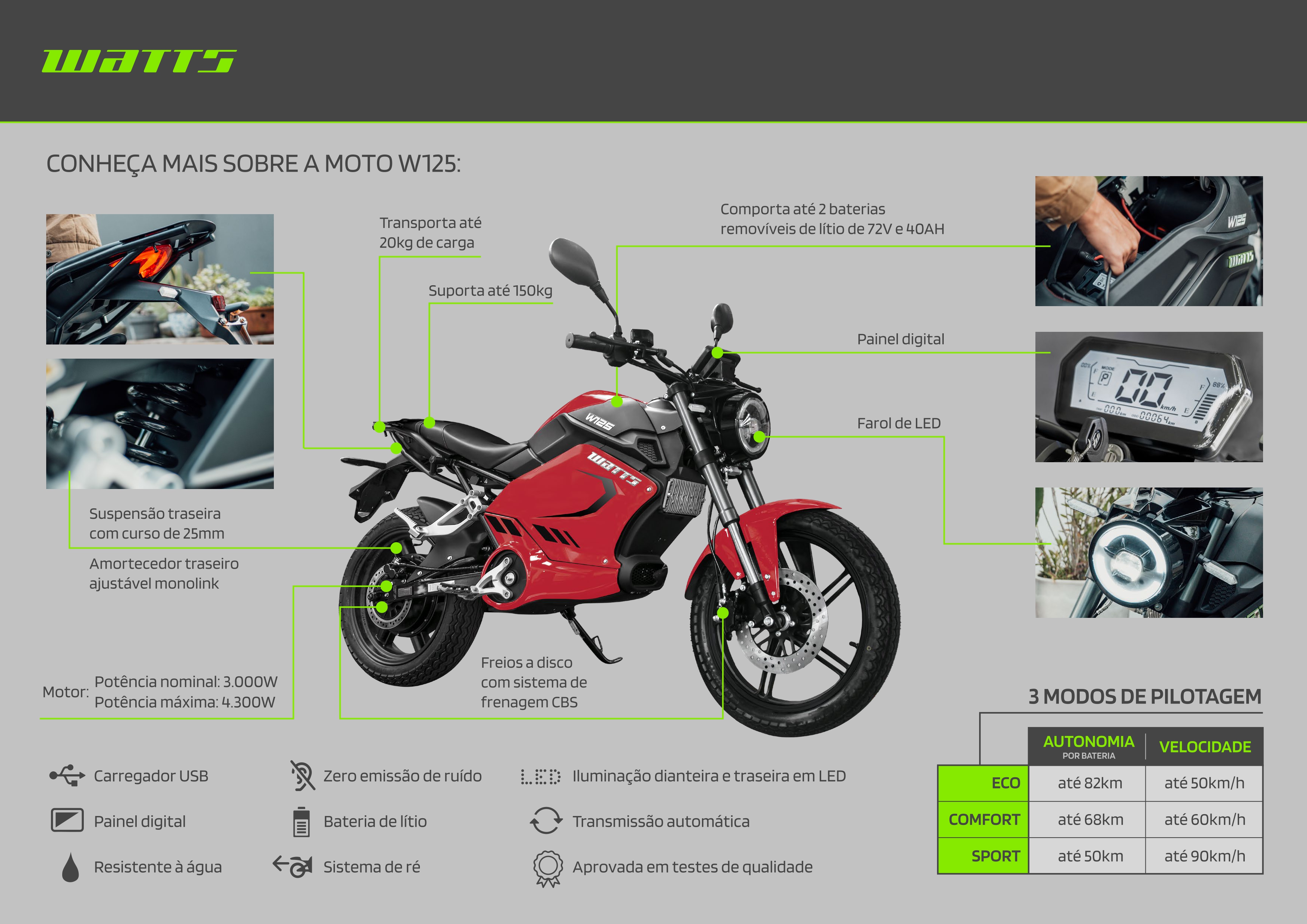 Autonomia Alta tecnologia embarcada para percorrer até 160 km por recarga/bateria